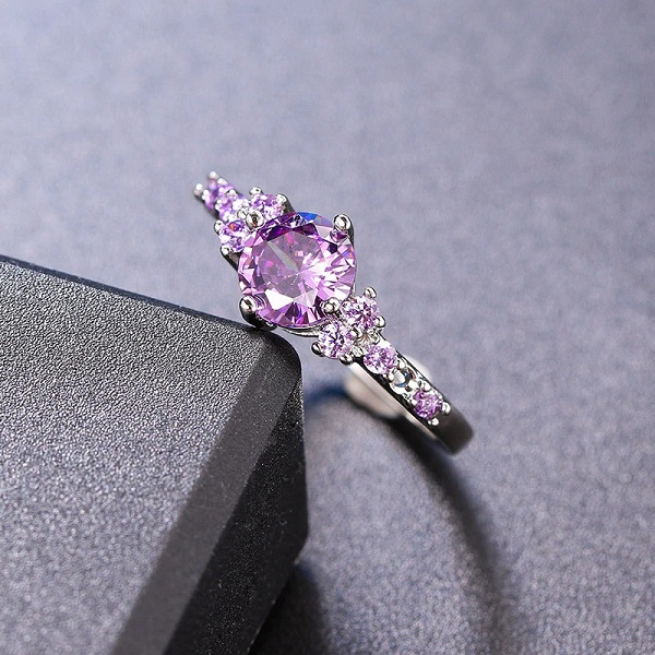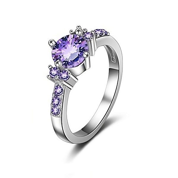 La piedra central púrpura roba la mirada de forma elegante.